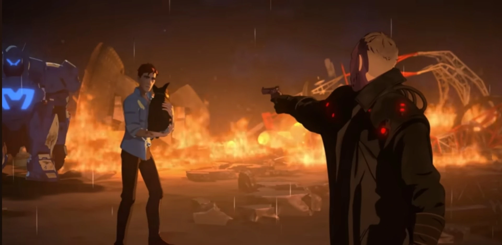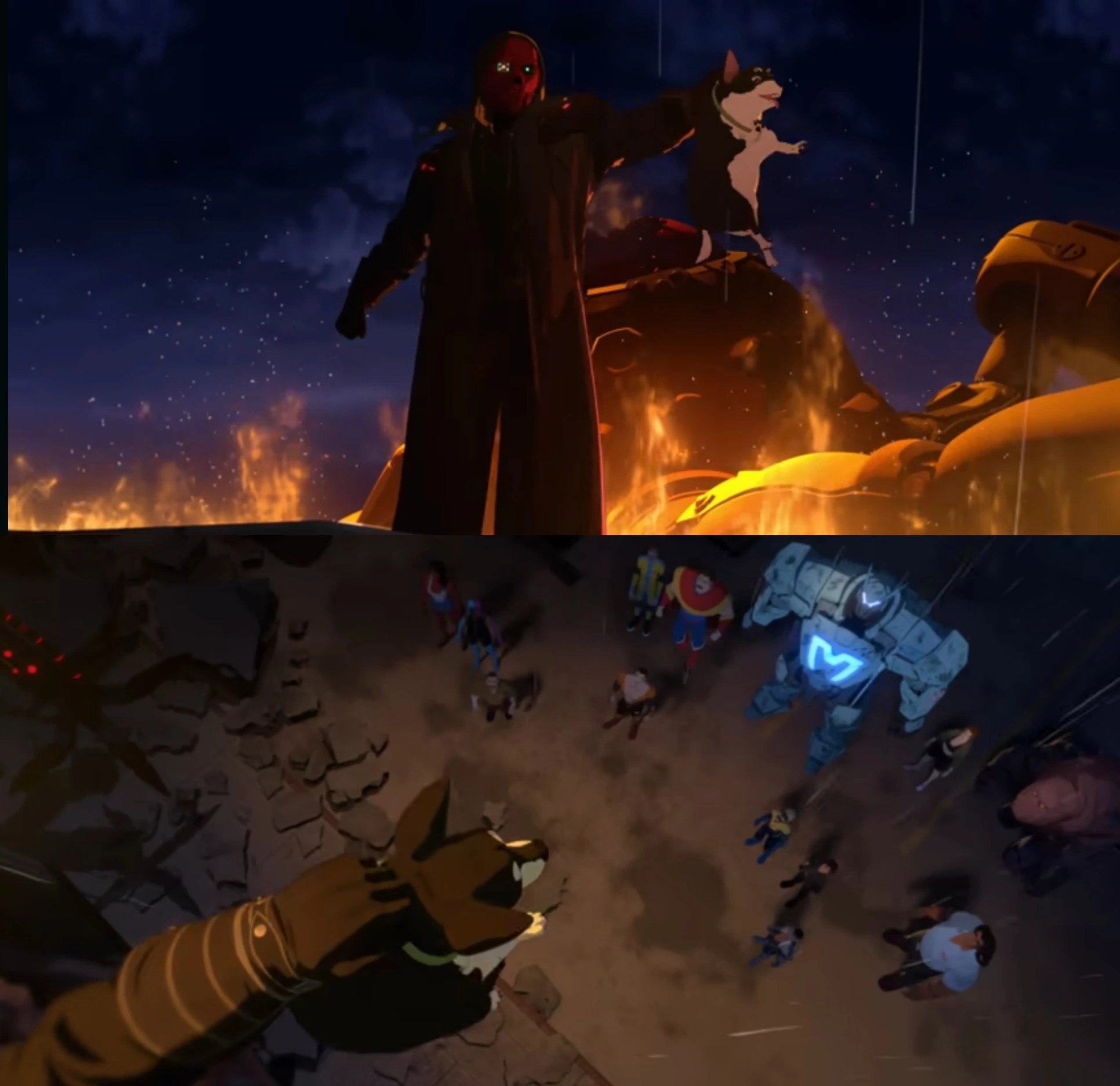 This quickly ends when they see Shroud, who is holding Beef, Robert's dog, hostage, threatening to kill him if the group doesn't surrender and Robert gives him the Astral Pulse, they end up reluctantly agreeing to do the former, and while Robert went to the rooftop to get to Shroud, he decides to grab the prototype made by Royd during the time he was trying to fix Robert's suit.